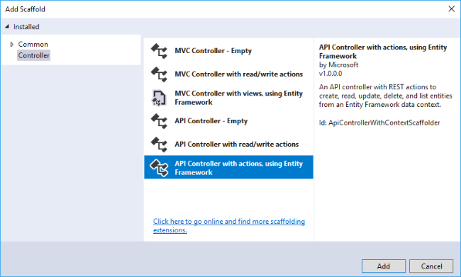 (Another way to install Swagger is via the Package Manager Console, in which case you would use the command: Install-Package Swashbuckle.AspNetCore)