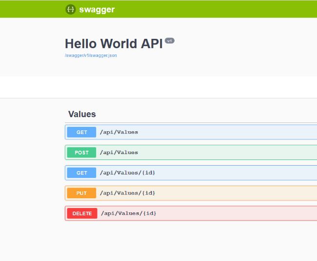 The api/Values that is shown is part of hard coded boilerplate generated by Visual Studio. Useful for verifying Swagger is setup correctly, but we no longer need it.